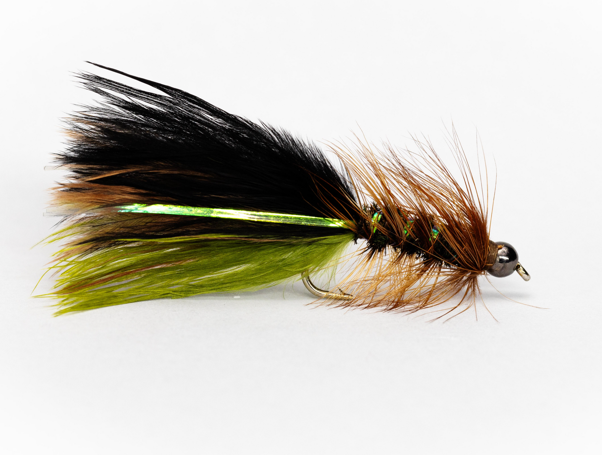 The Thin Mint Streamer is a deadly pattern that combines subtle movement, flash, and a proven color combination to imitate baitfish, leeches, and other large prey. Featuring a marabou tail in olive, brown, and black with a hint of flash, this fly moves enticingly in the water, triggering aggressive strikes from trout, bass, and other predatory fish.